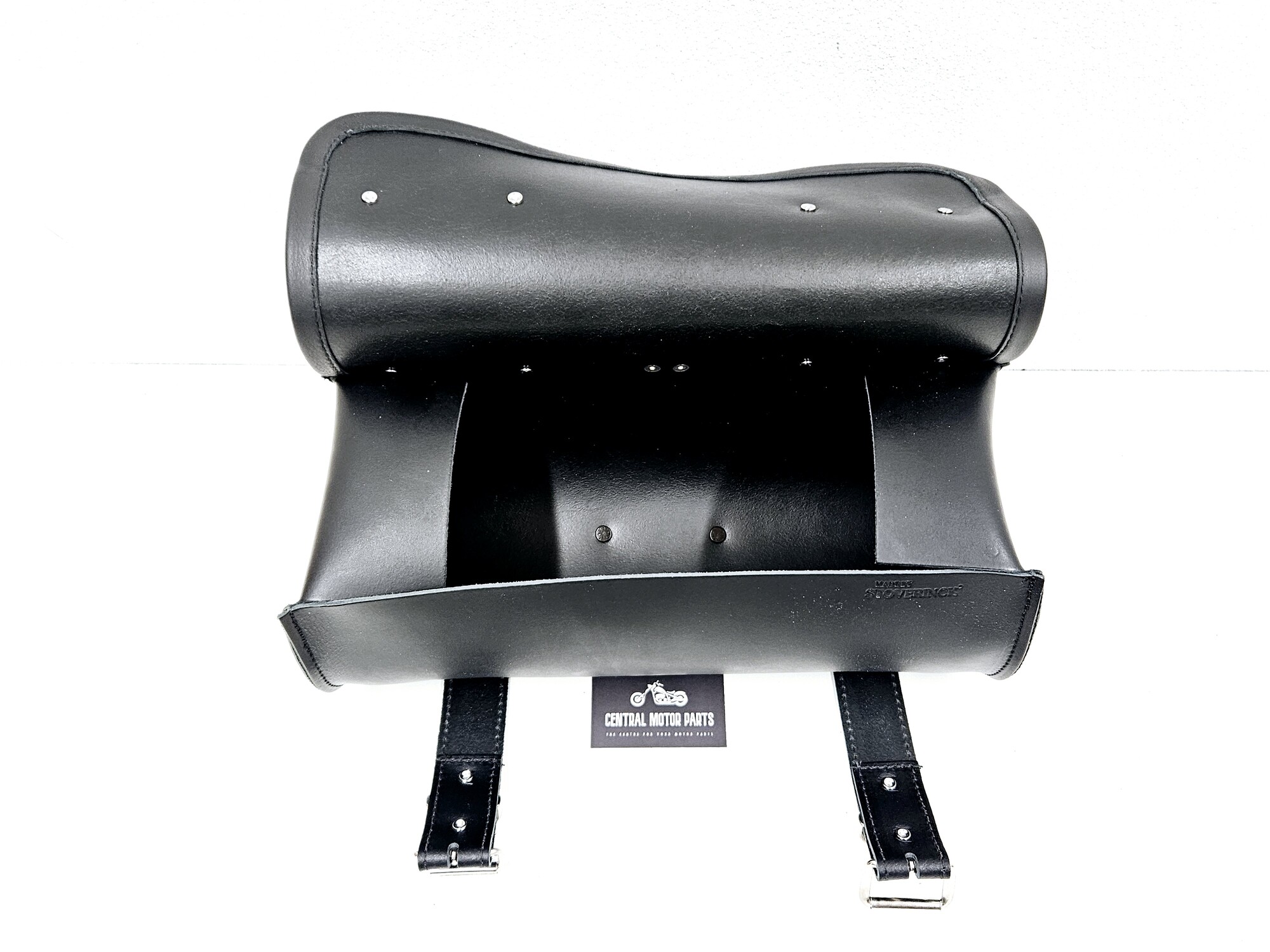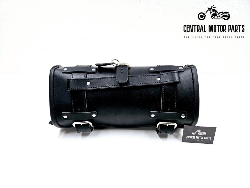 Een de onderkant zit een leren lus voor makkelijke bevestiging aan de motor.