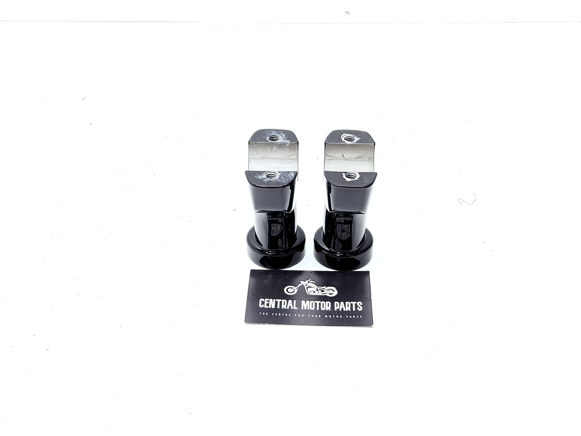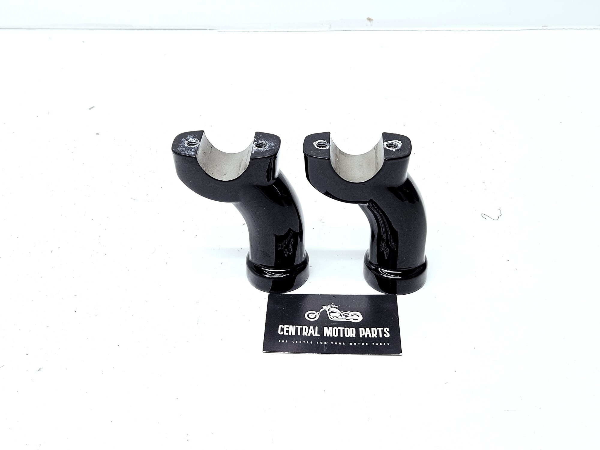 Een set glans zwarte Riser Lowers voor Harley Davidson modellen met 1.25 inch stuur dikte bij de aansluiting.