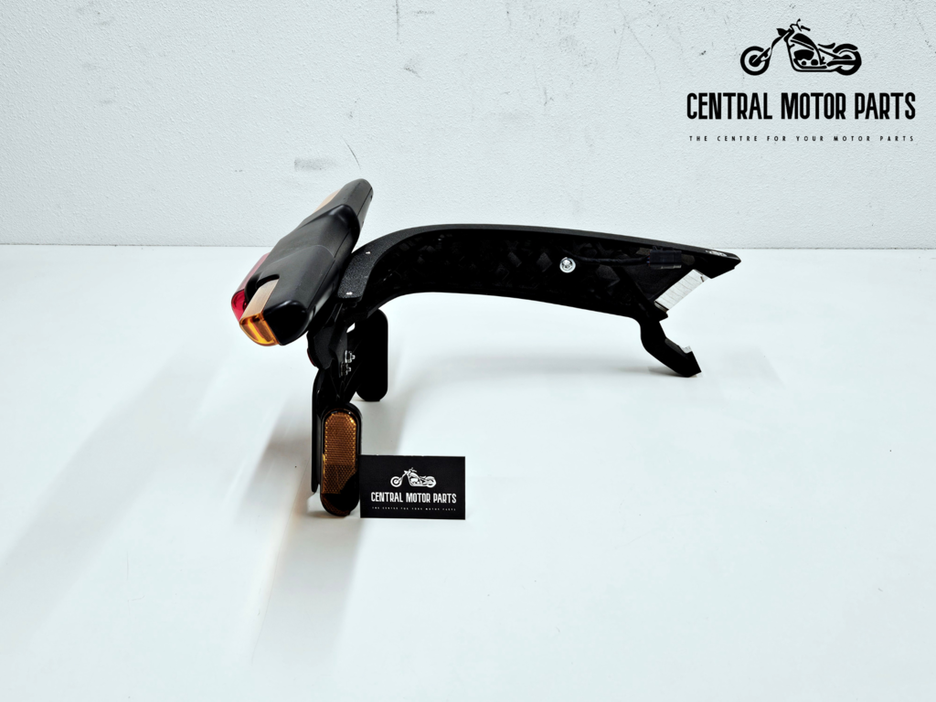 Een Swingarm mount met verlichting en kentekenplaat houder voor Harley Davidson Softail FXDR modellen van 2019.