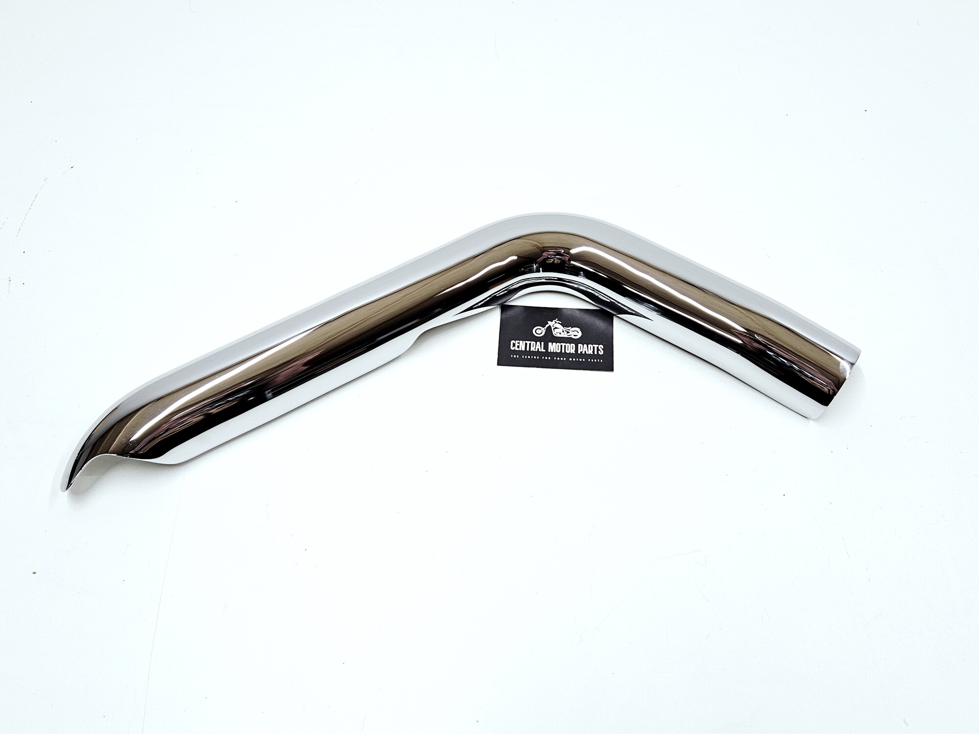 Een chromen voorste hitteschild voor Harley Davidson Softail modellen van 1986 t/m 2017 met een Vance & Hines Big radius uitlaat.